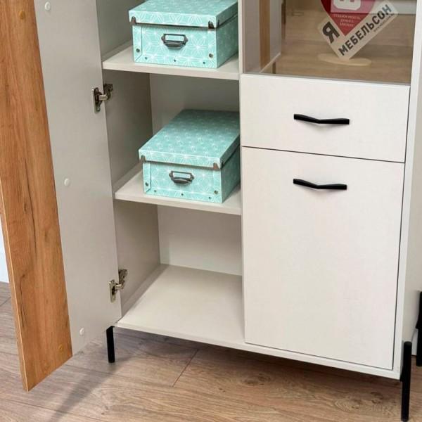 Вторая дверь, выполненная со стеклянной вставкой, позволяет демонстрировать коллекции, декоративные предметы или книги, придавая вашему пространству дополнительный шарм и элегантность.